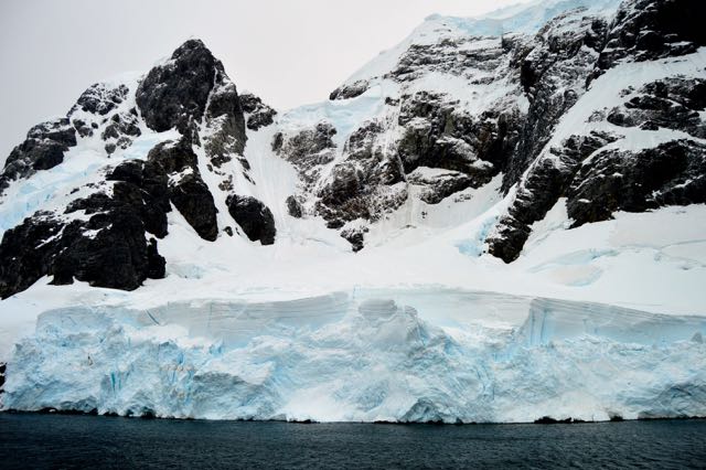 When we first arrived, it looked as though the Lemaire might be too choked with ice to allow us through. Expedition slowed way down and after a little examination, the bridge crew were able to find a narrow gap right up against one side where the wind had blown the ice clear. Huge cliffs and walls of ice towered above the ship as we slid by.